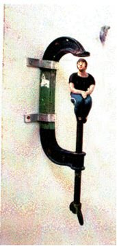 Come on... (1998) presents a physical representation of a dialogue of self-encouragement. The enlargement of the photographic image in relation to the figurine indicates a deflation in self-esteem and isolation.
