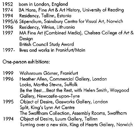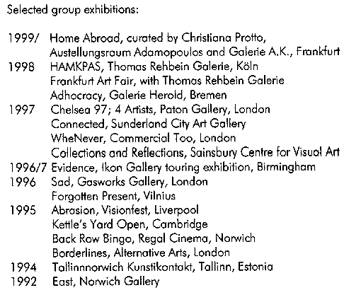 Eröffnung: Freitag den 23.7.99 ab19 Uhr; Öffnungszeiten: Sa. 24.7/So. 25.7., jeweils 18-22 Uhr |