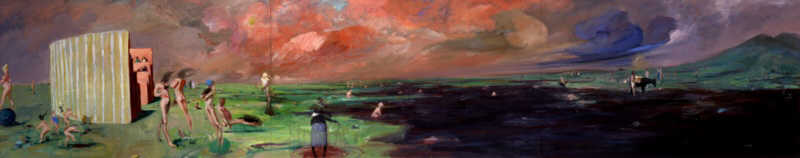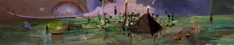 Doch nicht nur die Begegnung von Tier und Mensch, sondern auch das menschliche Miteinander ist in seinen Bildern von einer weitabgewandten Unschuld bestimmt. Das klingt zunächst nach paradiesischen Zuständen - wären nicht alle seine Wesen in einer Art autistischer Genügsamkeit gefangen. Selbst nackte, satyrhafte Zwitterwesen oder teuflische Aliens scheinen hier ihrer Wirkung beraubt und geeint in einem Zustand von Langeweile, ähnlich der unbestimmt andauernden Drehpause eines Fellini Films, bevor das bunt kostümierte Völkchen wieder an den Set muß.