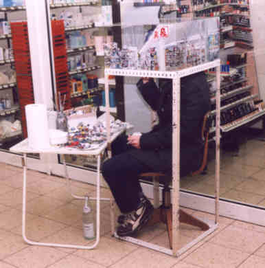 Pia Linz , ein Haubenbild in der Bad Emser Einkaufspassage malend